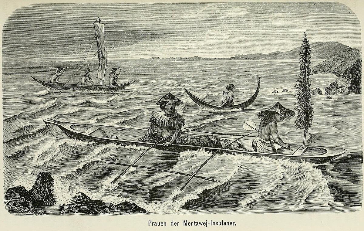 European awareness of the Mentawai dates to the late eighteenth century, with the first substantial written account appearing in 1799. During the nineteenth century, colonial officials produced a growing body of reports, reflecting the strategic importance of the islands. In 1821, Sir Thomas Stamford Raffles remarked admiringly on the Mentawai, describing them as “even more admirable and probably much less spoiled” than other island peoples he had encountered. [Source: Reimar Schefold and John Beierle, e Human Relations Area Files (eHRAF) World Cultures, Yale University, September 1999; [Source: Lars Krutak, Tattoo anthropologist; Wikipedia]