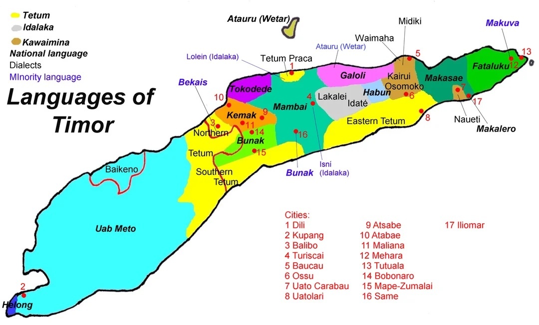 Language of the Atoni is Uab Meto, an Austronesian language in the Timor Group that is not mutually intelligible with languages of their neighbors on the island or nearby islands. . It had no written form until a Dutch linguist romanticized the script before World War II. Bahasa Indonesian, the Indonesian national language, is now used in offices, businesses, schools, the media, and some churches, A related dialect, Kupang Malay, was used by traders for centuries.