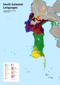 Languages: The Buginese, Makassar, Mandar, and Sa'dan Toraja languages constitute a distinct group of closely related Austronesian languages. Bugis is regionally prestigious and has over 500,000 second-language speakers. Makassar has over 400,000 speakers, though this figure does not include the many ethnic Chinese for whom it is the first language. The multiethnic city of Makassar has long had its own dialect of Malay as its lingua franca. This dialect is distinguishable from the now-common Bahasa Indonesia by its use of sentence-final particles, such as "Satu ji" for "One only" instead of the standard "Satu saja." Personal names generally reflect Islam and are Arabic in origin. Family names are not used.