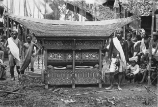 With the exception of certain groups in the Palu River valley that had adopted Islamic burial practices, Eastern Toraja groups observed two funerals: one held shortly after death and a second, usually communal ceremony held one or two years later. Final disposal of the body took place only after the second ceremony. After death, the corpse was laid out under a canopy for one or two days, then placed in a coffin made from a hollowed log split lengthwise. The coffin was carried away and either buried in the ground or set on a raised platform outside the village. [Source: John Beierle and Martin J. Malone,e Human Relations Area Files (eHRAF) World Cultures, Yale University, September 1996]