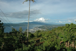 Ambon Island itself consists of two peninsulas, Hitu and Leitimur, joined by a narrow isthmus. The bay formed by these landmasses provides a sheltered harbor where the city of Ambon (Kota Ambon) was established. While fertile volcanic soil and high rainfall support agriculture, the terrain is steep, and surrounding coral reefs have suffered from destructive fishing and sand mining.