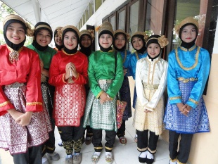 All dances are usually performed by groups and involve dynamic movements such as stepping, chest beating, and hip and shoulder movements. They are usually performed at special government functions, but local dancing traditions and groups continue the heritage in many areas. Each region of Aceh has its own versions of dances, some of which are indigenous. The costumes are typically long-sleeved tops and sarongs wrapped around the waist, and the colors are often brilliant. Women usually wear headpieces, and the use of jewelry depends on the aspect of life depicted by the dance. All Acehnese dances have certain characteristics in common. Islamic values are often spread through these dances in Aceh. The dances depict daily social activities.