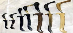 Rencong is a distinctive Acehnese dagger that played a crucial role during the Acehnese wars. Today, it is worn as an essential element of traditional dress and is also widely valued as a cultural souvenir from Aceh. The blade is made of metal, while the hilt and scabbard are traditionally crafted from ivory, scented wood (kayu kemuning), or buffalo horn. Pattern-welded steel is commonly used for blades fitted with buffalo-horn hilts and scabbards, whereas brass alloys are often used for examples mounted with ivory or scented wood. In addition to horn, wood, and ivory, silver and gold may also be used for decorative fittings.