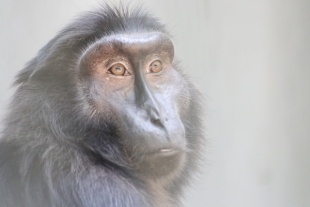 Celebes crested macaques are popular zoo animals in part because they have interesting, human-like facial expressions. They are also known as black crested macaques, crested black macaques, Sulawesi black macaquse, Sulawesi macaques, and incorrectly as Celebes black apes. Among the species of macaques of Sulawesi, Celebes crested macaques are difficult to distinguish from Gorontalo macaques (Macaca nigrescens). Both have black skin and fur, but the upper half of the body of Celebes crested macaques is darker and more dull. Hybrids of Celebes crested macaques and Gorontalo macaques have been recorded. /=\