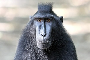 Celebes crested macaques are popular zoo animals in part because they have interesting, human-like facial expressions. They are also known as black crested macaques, crested black macaques, Sulawesi black macaquse, Sulawesi macaques, and incorrectly as Celebes black apes. Among the species of macaques of Sulawesi, Celebes crested macaques are difficult to distinguish from Gorontalo macaques (Macaca nigrescens). Both have black skin and fur, but the upper half of the body of Celebes crested macaques is darker and more dull. Hybrids of Celebes crested macaques and Gorontalo macaques have been recorded. /=\