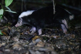 Palawan stink badgers (Mydaus marchei) are known as pantot or tuldo in the Batak language. They live only two Philippine Islands. Palawan and Busuanga, both located north and east of Borneo. Their preferred habitat appears to be cultivated areas and grassland thickets, which are mainly found on the western and eastern sides of Palawan.[Source: Valerie Eurs, Animal Diversity Web (ADW) /=]