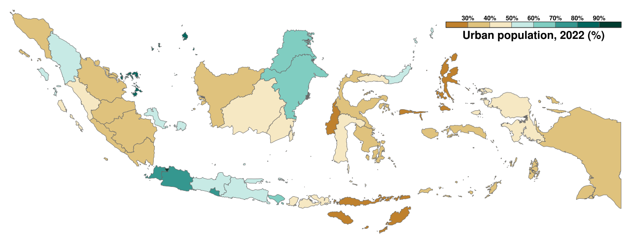 Urbanization continued to rise, with a growing share of Indonesians living in urban areas. This trend reflected broader economic and social changes, including shifts toward industrial and service-based activities.