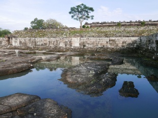 Ratu Boko stands 196 meters above sea level and covers an area of 250.000 square meters . It is divided into four parts, the center, the west, the southeast and the east. The central section of the temple consists of the main gates, a crematorium temple, a pool, a stone pedestal and the paseban (or audience hall). The southeast part covers the pendopo (attached open veranda which serves as an audience hall), balai-balai (public hall or building), three temples, a pool and a harem complex. In this part there is also a well called the Amerta Mantana which literally means “holy water”. It is believed that the well water had a virtue to bring luck to those who drink it. On the east side, there are a cave complex, a Buddha stupa and a pool. Many of its original constructions which were made of wood were destroyed through the ages.