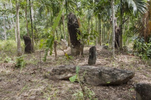 Sumatra hosts a number of significant megalithic sites, particularly in the Pasemah Highlands (South Sumatra) with extensive statues and stone structures, and Lampung (Pugung Raharjo) featuring pyramid mounds and dolmens, alongside sites near Lake Toba (North Sumatra) and in West Sumatra (Kerinci Valley), showcasing pre-Hindu-Buddhist cultures with diverse forms like sarcophagi, menhirs, and monumental vases, reflecting ancient social structures and ancestor worship, with some traditions continuing today, especially on nearby Nias Island. [Source: Google AI]