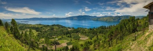 Lake Toba (Danai Toba) is the largest lake in Southeast Asia and, according to the Guinness Book of Records, the world's largest and deepest volcano crater. The lake is so big that an island almost the size of Singapore could fit inside it. It lies in a rugged mountainous area with dotted with fertile plains, rice paddies, coffee plantations, banana, mango, papaya and coconuts trees and forested and deforested mountains. The water is exceptionally clear. The mountains are often shrouded in mist.