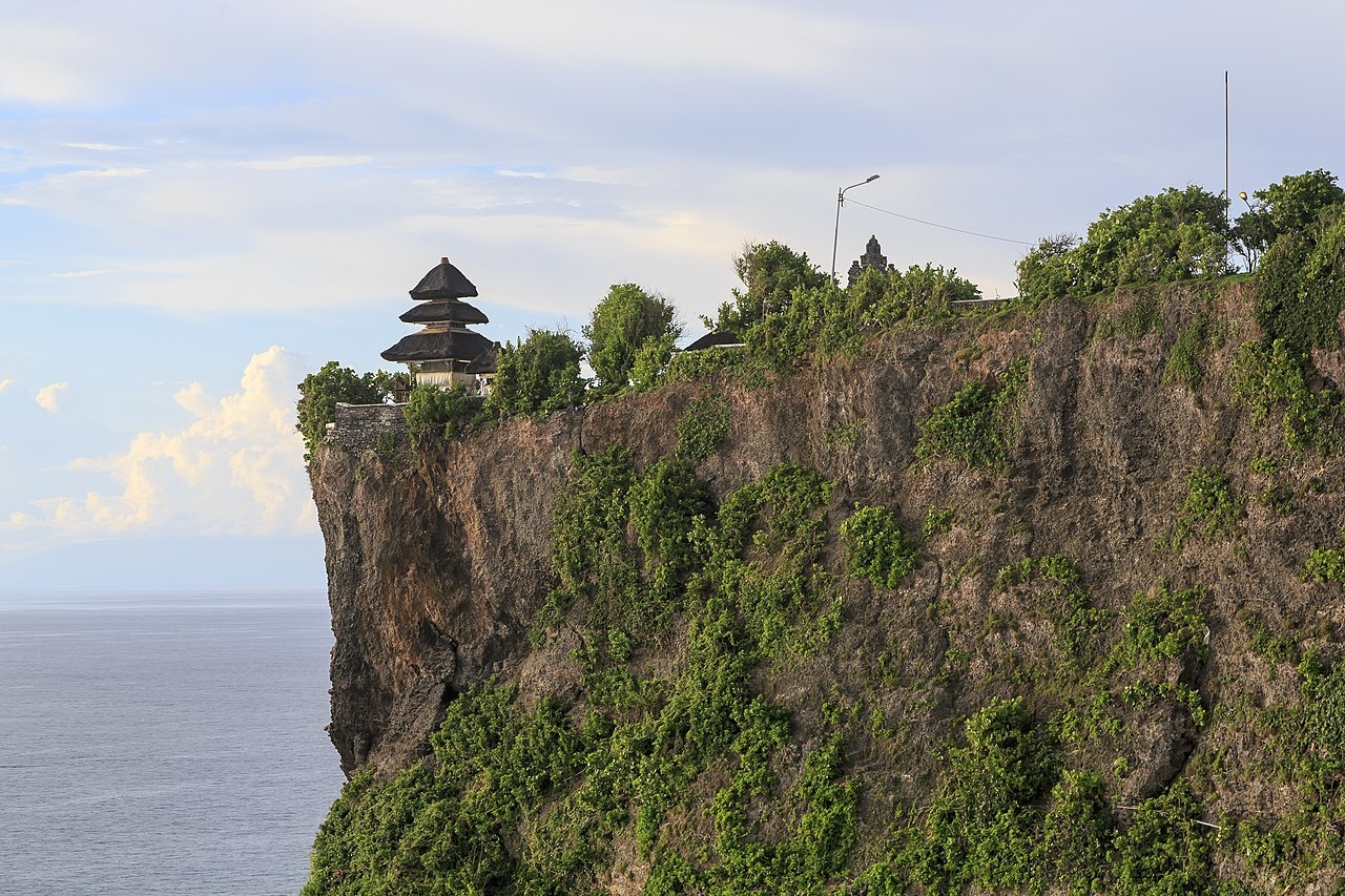 Uluwatu Temple (southwestern tip of the Bukit Peninsula) is a Hindu temple dedicated to Sang Hyang Widhi Wasa in his manifestation as Rudra. It is unique among Bali’s sea temples (pura segara) in that it is also one of the nine directional temples known collectively as Pura Kahyangan Jagat (or Pura Kahyangan Padma Bhuwana). [Source: Wikipedia]