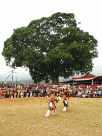 Compang Ruteng (three kilometers from Ruteng) is located in the center of the Ruteng Pu'u village in Golo Dukal sub-district, Manggarai, Flores. A compang is a stone altar usually found in the yards of traditional homes of the Manggarai community. The Compang is the center of traditional ceremonies, among which is the penti, a ceremony to thank God for a bountiful harvest. During the ceremony, water buffalos and cows are tied to the compang and sacrificed.