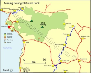 .Access to the park is from Ketapang, a town with 30,000 people. Permits to enter the park, guides and food can be obtained there. Ketapang is the starting point to make the two hour overland journey to Sukadana, which is the entry point to Mount Palung National Park. There is road to Ketapang but the bus journey is awful. Most people arrive by plane or boat. DAS and Deraya operate daily flight from Pontianak. From Jakarta or Kuching there are 75-minute flights to Pontianak’s airport. From there, it’s another hour’s flight to reach Ketapang Airport. There are also twice-daily jet boat from Pontianak that takes six to eight hours.