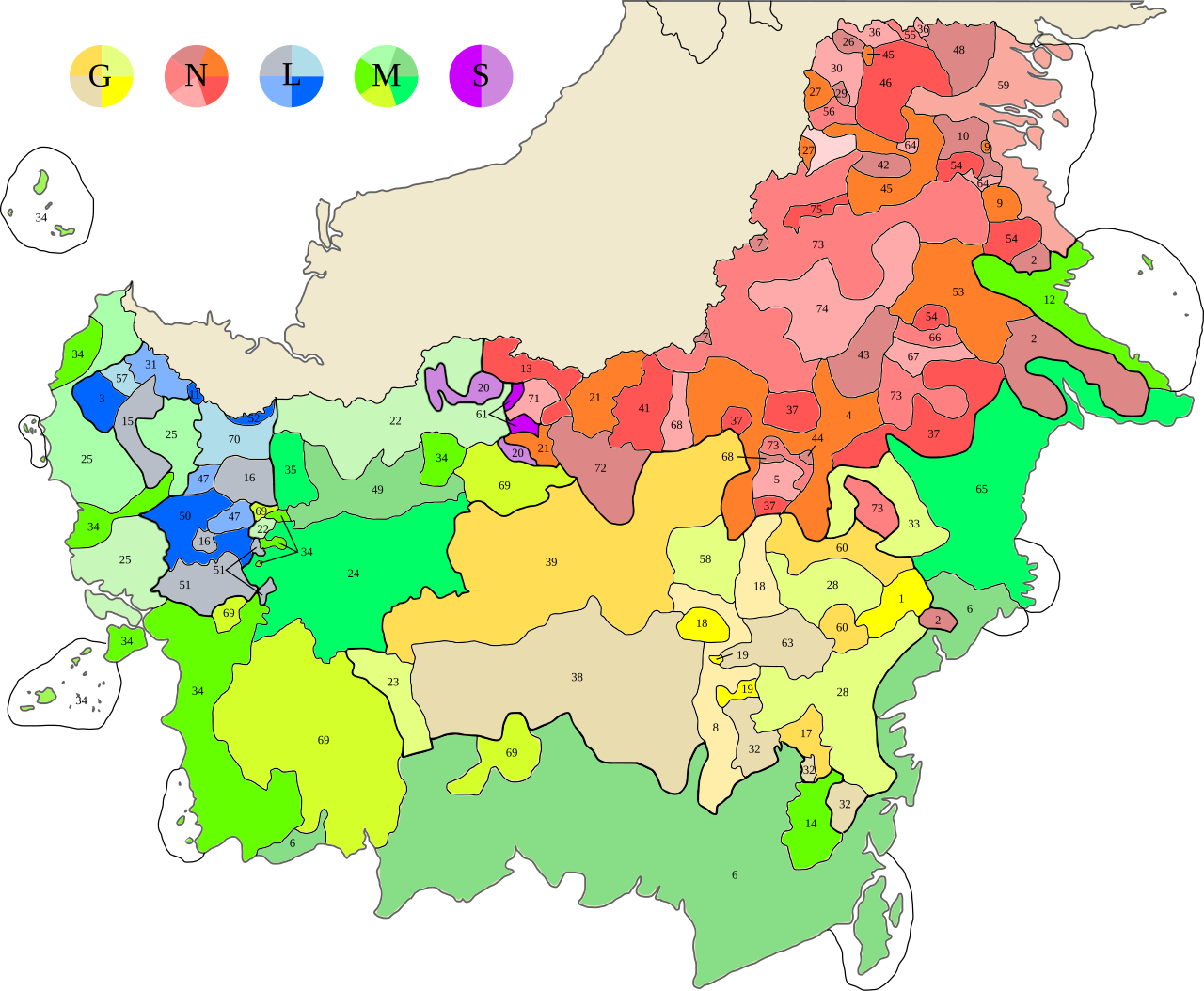 Banjarese — 14,430 (0.33 percent) — 464,260 (21.28 percent) — 2,686,627 (74.84 percent) — 440,453 (12.45 percent) — 3,605,770 (26.31 percent)