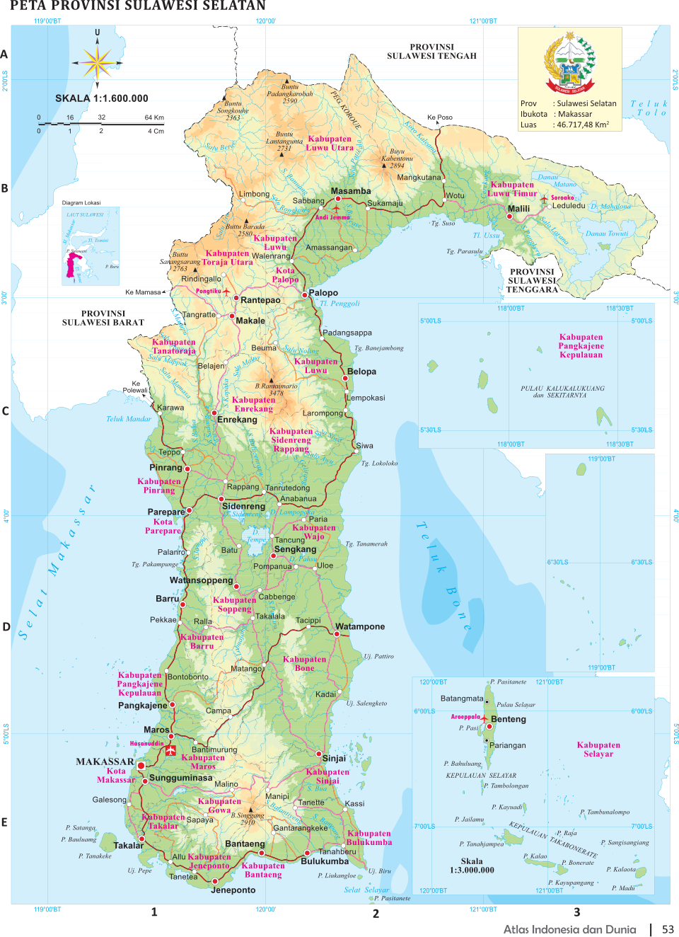South Sulawesi is a mostly mountainous region best well known for the two unique cultures which inhabit it: the seafaring Bugis on the southern tip of the island and the Torajas who live in the rugged country further north and are known for their unusual customs. Bugis make up two thirds of he region’s population. The Makarese, another seafaring people, make up about a quarter of the population. South Sulawesi Province covers 46,717.48 square kilometers. Its population rose from 8,034,776 in 2010 to 8,395,747 in 2014. Its population density is 179.7 people per square kilometer.