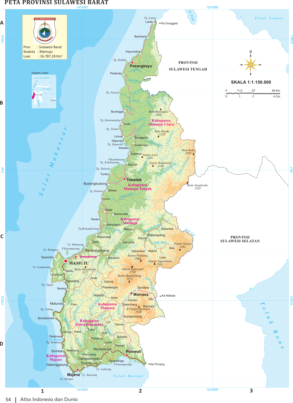 Mamuju as the capital of West Sulawesi. Administratively, the province is divided into five regencies. Geographically, the province is located between the golden Triangle of South Sulawesi, East Kalimantan and Central Sulawesi as well as directly faces national and international sailing route of Makassar straits. The province embraces ocean coastline, lowlands and highlands. There is a lot of fertile land. Climate is generally tropical.