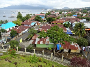 The business district of Ternate is an interesting place to strol around sample the dishes and snacks sold food sellers positioned along the streets. The main street is so long it has five names; Jl Sultan Khairun, Jl Merdeka, Jl Mononutu, Jl Hasan Esa and eventually Jl Raya Bastiong. There are also plans to develop a mega mall. The volcanic landscape of Ternate has given the island its fertile soil and beaches with black sands. There are man picturesque places with colorful boats of various sizes lying in the shallow turquoise water, shaded by swaying coconut trees.