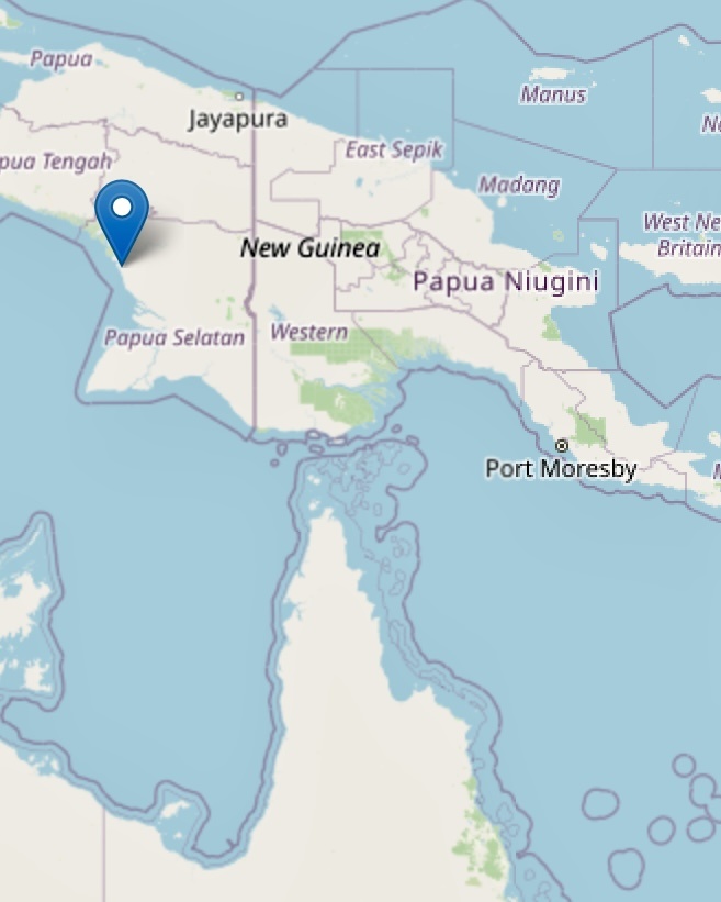 Agats (along the southeast coast of Papua) is the largest town in Asmat country. It is the obvious jumping off place for Asmat villages. In the town drinking water and electricity are in short supply. Much of the town is on stilts or wooden walkways to deal with the high tides. There is a museum in Agats but the land around the town is still pretty wild wilderness. houses some of the best carvings and artifacts collected from all over the region. The museum of Asmat art contains trophy skulls, bone daggers, stone clubs, 20-ancestor poles, tall battle shields covered with praying mantis and other headhunting symbols. Modern pieces show families collecting sago.