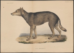 Temminck determined the Japanese wolf to be a separate species (Canis hodophilax) from the common Eurasian grey wolf (Canis lupus). Later researchers, however, judged the Japanese form to be a regional subspecies of the grey wolf (C.l. hodophilax). In Japan there is still a lively controversy over this classification. One theory holds that the Japanese wolf is a relict species, the last remnant of a very primitive form of wolf that was once widespread. Later, the primitive forms on the continent were replaced by the modern grey wolf, but here in Japan they managed to survive in isolation.