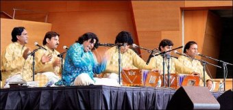 A ghazal is a light style of classical Persian love music adored by the Mughals. Originally more of a poetic than musical form, the name is derived from an Arabic word meaning "to talk amorously to women." Although sometimes referred to as the Urdu equivalent of khayal, it is based as often on folk melodies as on ragas. The lyrics are often taken from famous Urdu poems. Famous ghazal singers are mostly women. They include Shabha Urtu, Najma Akhtar and Begum Akhtra (1914-1974). [Source: Rough Guide of World Music]