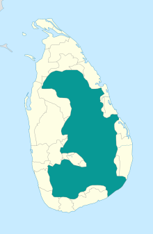 Toque macaques (Macaca sinica) live only on the island of Sri Lanka. They are found in all areas of the country except the Jaffna Peninsula in northern Sri Lanka and the Trincomalee area in northeastern Sri Lanka. They live in tropical areas and areas with an extended dry season) in forests, scrub forests, swamps, agricultural areas and areas near rivers at elevations from sea level to 2100 meters (6880 feet).[Source: Matthew Kanelos, Animal Diversity Web (ADW) /=]