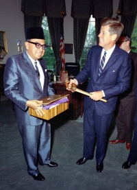 After it became independent and sovereign in 1957 and 1963, Malaysia was immediately challenged by Indonesian hostility. Indonesia denounced Malaysia as a British imperialist creation and launched an undeclared conflict known as Konfrontasi. Malaysia relied heavily on military support from Britain and other Commonwealth countries, and hostilities continued until President Sukarno’s removal from power in 1965. The Philippines also opposed the federation, pursuing a diplomatic claim over Sabah until the late 1970s. [Source: Columbia Encyclopedia, 6th ed., Columbia University Press]