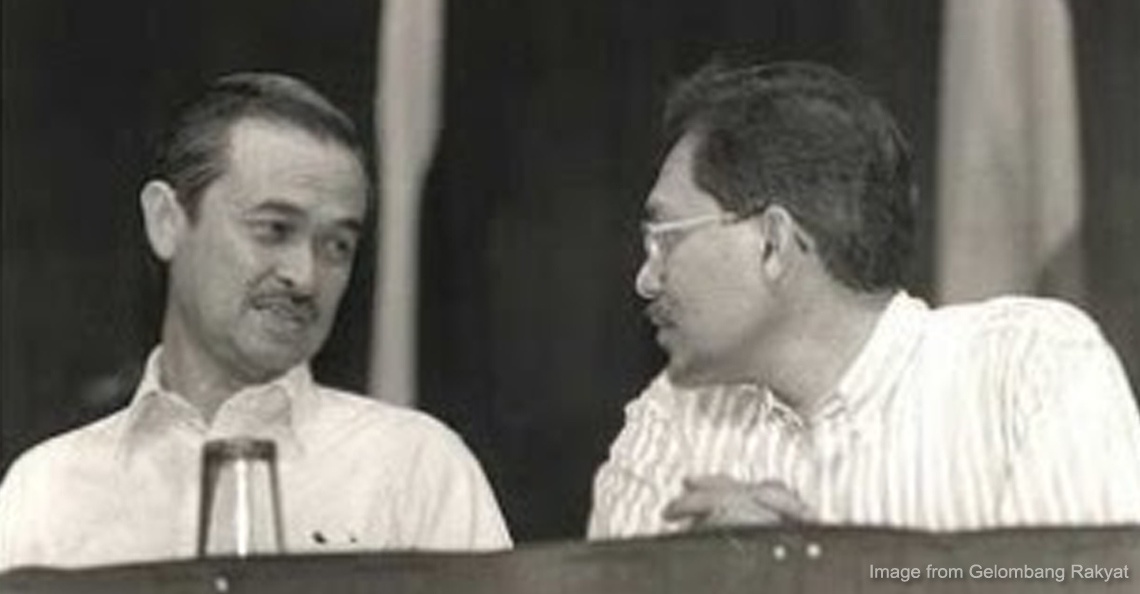 Early in Mahathir Mohamad’s tenure as prime minister, UMNO was torn by an intense internal struggle that split the party into two factions: “Team A,” led by Mahathir and his loyalists, and “Team B,” which supported former Finance Minister Tengku Razaleigh Hamzah and former Deputy Prime Minister Musa Hitam. Mahathir ultimately emerged victorious, and Tengku Razaleigh was excluded from the newly formed UMNO (Baru). Abdullah, who was closely aligned with his mentor Musa Hitam in Team B, suffered politically as a result and was dismissed from his post as Minister of Defence. However, he did not join Tengku Razaleigh’s breakaway party, Semangat 46, which later became defunct. [Source: Wikipedia]