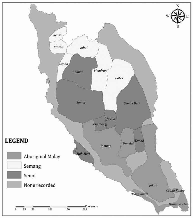 The Semang are probably descendants of the pre-Neolithic Hoabinhian rain forest foragers who inhabited what is now the Malay Peninsula, arts of Sumatra, and Southeast Asia as far north as Vietnam, from 10,000 to 3,000 year ago. After the arrival of agriculture about 4,000 years, some became agriculturalists but enough remained hunter gatherers that they survived as such until recent times. At this time Austroasiatic-speaking migrants arrived and also brought to the Malaysan peninsula Aslian languages, which evolved into modern Senoic languages and Semang languages.
