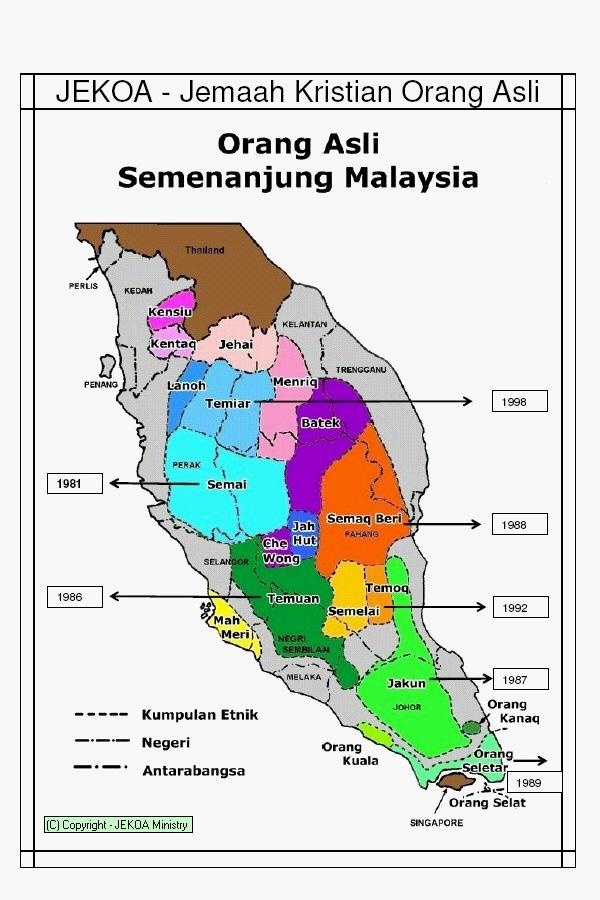 Historically, these tribes were organized as separate communities that experienced limited outside influence. They are often distinguished from Malaysian Malays by religion, as most are not Muslim, although some groups—such as the Orang Kuala—converted to Islam before Malaysia’s independence.