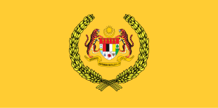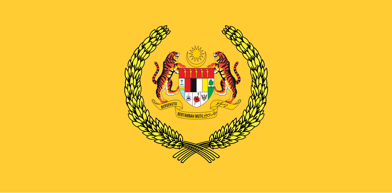 Panji-Panji Diraja (Royal Flag) is royal yellow and bears the Malaysian Coat of Arms at its centre, flanked by two golden sheaves of paddy. The paddy symbolises abundance and prosperity. As Head of State, the Yang di-Pertuan Agong represents national loyalty to the Constitution and the rule of law. The royal flag symbolises the authority and continuity of the monarchy. The Panji-Panji Diraja is raised when the Yang di-Pertuan Agong attends important events such as the opening of Parliament, official visits, or state ceremonies. It is hoisted upon his arrival and lowered when he departs. The flag is flown at half-mast only upon the death of the Yang di-Pertuan Agong.