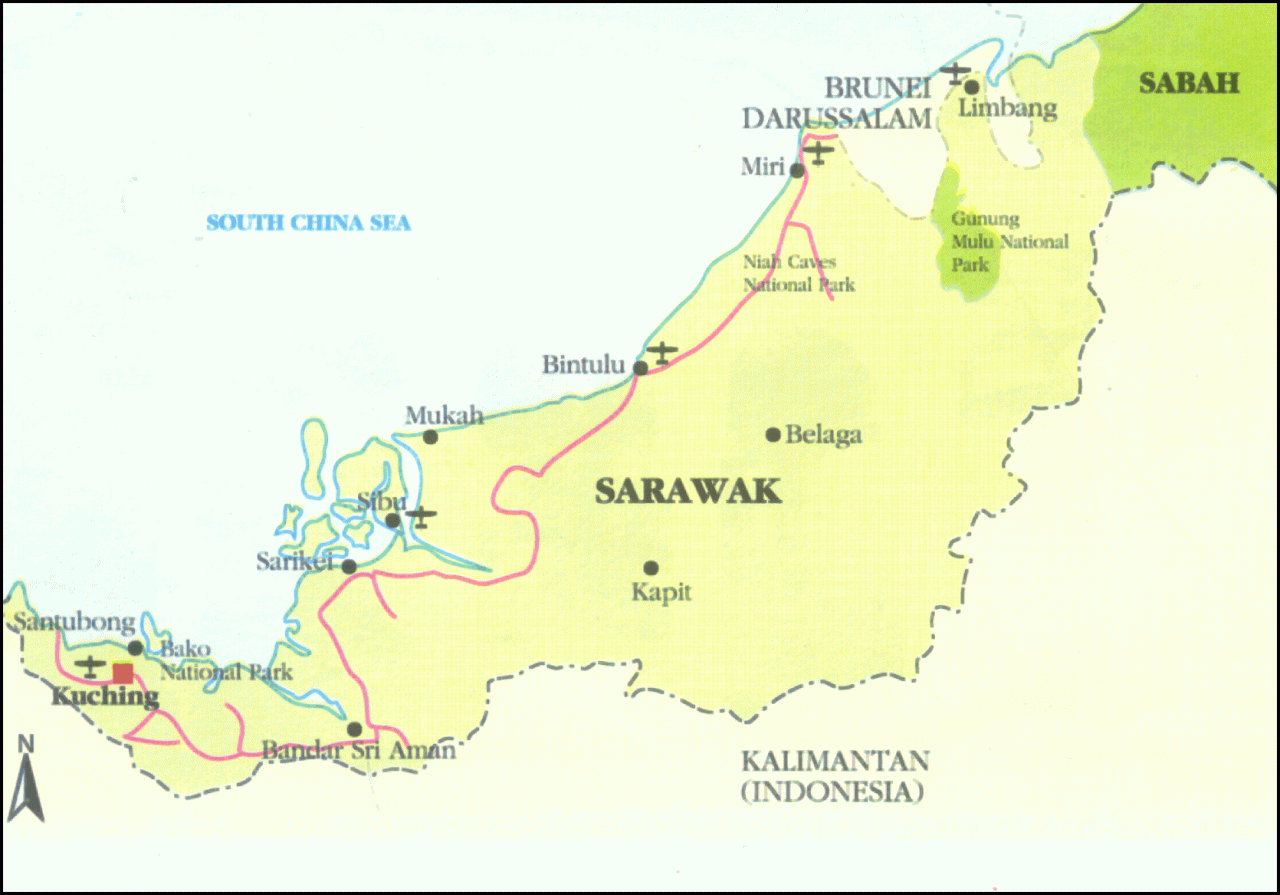 Central Sarawak stretches from Sibu, on the lower Batang Rajang, upriver to Kapit and northeastward along the coast to Bintulu and Miri. This part Sarawak offers some great river journeys, spectacular national parks and modern urban cities. The geosyncline region, which extends northeast to the Batang Lupar River forms the central and northern regions of Sarawak. Image result for major rivers central Sarawak.