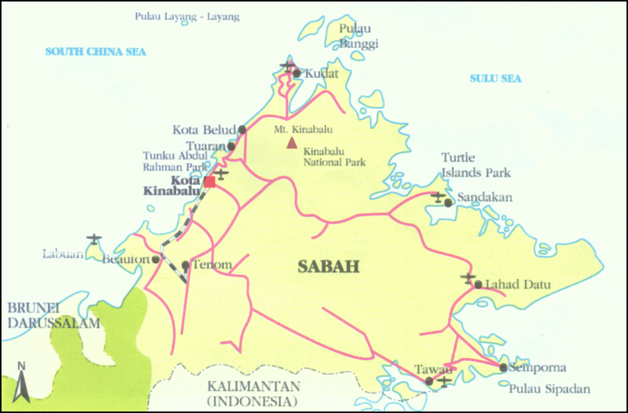 Sabah occupies the northwest corner of Borneo and lies between the Philippines and Brunei. About half the size of Sarawak in terms of land area but about equal in terms of population, Sabah is covered mostly by rain forest, mountains, or land deforested by timber companies. The roads are just as poor as those in Sarawak but there are fewer navigable rivers, which means people have to get around by road or air because there are few other choices.