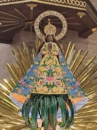 Our Lady of Guidance (Spanish: Nuestra Señora de Guia) is a 16th-century Roman Catholic image of the Blessed Virgin Mary as the Immaculate Conception that is widely venerated by Filipino Roman Catholics. Considered to be a form of Black Madonna, the wooden statue is considered the oldest artistic depiction of Mary in the Philippines, and is believed to have been originally brought to the islands by Ferdinand Magellan (along with Santo Niño de Cebú) in the early 16th century. Locally venerated as patroness of navigators and travellers, the image is enshrined in the Nuestra Señora de Guia Archdiocesan Parish in Ermita, City of Manila. The venerated image is often framed the Pandan leaves associated with her primeval discovery by early Filipino pagans. [Source: Wikipedia]