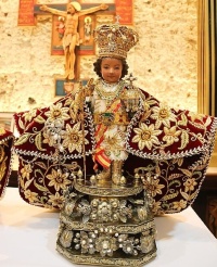 Forty-four years later, in 1565, a large part of Cebu was destroyed by a fire. The fire was set on purpose by the Spaniards as a punishment for hostile activities of the Cebu king Cebuanos. In one of the burned houses, a Spanish soldier found the image of Santo Niño. Remarkably it was unscratched! Since then, the miraculous image has been treated by the Cebuanos as its patron saint. At present, the miraculous image is kept in the Parish convent. A replica, adorned with gold and precious stones and enshrined in glass, is housed inside the Basilica Minor del Santo in present-day Cebu City.