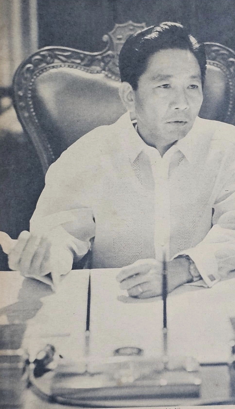 “In most of these Asian countries with authoritarian regimes, authoritarianism was not just a weapon for stifling democratic impulses but even more so it was a tool for economic expansion and development. When Marcos declared martial law, he was not just concerned with crushing the communist insurgency and destroying the political infrastructure of democracy, which allows the political opposition to obstruct government initiatives and to check its corruption and abuses. Marcos had a larger purpose than these. The larger purpose was to use martial law as the facility and stage for economic takeoff and development, emulating the models of economic success of our neighbors. Park Chung-hee's South Korea and Lee Kuan Yew's Singapore were shining examples of economic growth taking place under a climate of political stability and unhindered by political opposition in a democratic ambience. \=\