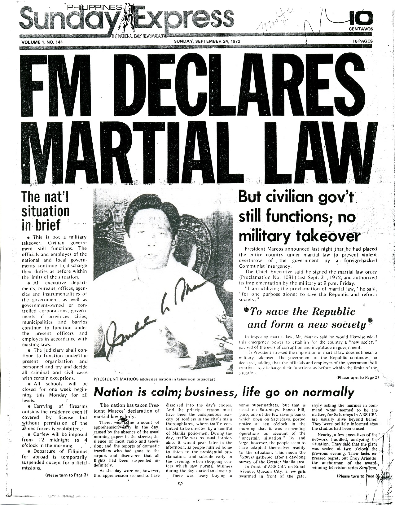 Marcos: Martial Law Prelude to a "New Society"