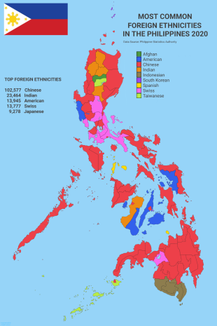The largest foreign national groups of residents in the Philippines (according to 2020 Census) are: