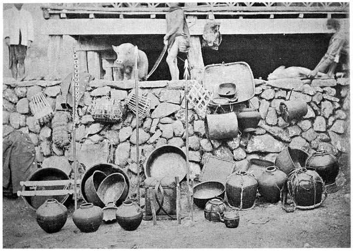 “We now entered our quarters” and “had not long been seated in our quarters before a deputation of chiefs with their gansas and a large number of bubud jars entered, and offered us bubud to drink. Very soon our visitors began to dance for us to the sound of the gansa, their dance being different from that we had seen a few days before at Campote. As, however, the next day was one dance from morning to night, I shall not spend any more time upon this affair, except to say that, turn about being fair play, Cootes got up and gave such a representation as he was able of a pas seul. When he had done, our visitors started anew, and the gansas proving irresistible, Cootes and I joined in. The steps, poise of body, motion of the arms and hands are so marked and peculiar that a little observation and practice enabled us in a short time to produce at least a fair imitation; indeed, so successful were our efforts that we were informed we should be invited to dance on the morrow before the multitudes! This brought us up standing, and it was time anyway. So our chieftains took their leave, their bubud jars remaining in our charge. These jars are worth more than a passing mention: the oldest ones come from China, and are held in such high esteem by the Ifugaos that they will part with them for neither love nor money. According to the experts, some of them are examples of the earliest known forms of Chinese porcelain, and are most highly prized by collectors and museums.”