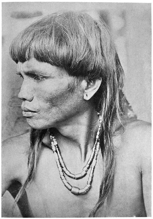 “There were many women and children, the children very shy. Of weapons there were none. Dancing went on uninterruptedly the whole day and night of our stay, and Cootes and I had to dance again. Only we had now arranged to simulate a boxing-match, which we presented to the beat of the gansa, and to the applause of our gallery. A runner came in while we were here, carrying a note in a cleft stick, the native substitute for a pocket. In dress and appearance, the Andangle people differed in no wise from those of Kiangan. Many of them, however, have a silver jewel, of curious and original design, worn chiefly as earring, but also on a string around the neck. Our splendid chief at Payawan also wore many of these jewels, but his were of gold. Mr. Worcester distributed his white slips to the ever-eager multitudes, listened to reports, and held council with the head men; the people were fed with rice and meat, appeared thoroughly to enjoy themselves, and so the time passed.