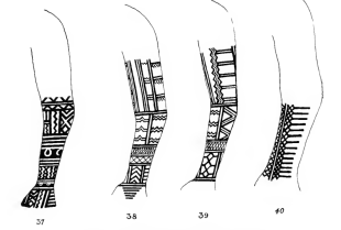 Traditionally, tattoos were given to men after successful headhunting raids, while women received tattoos to enhance beauty and attract suitors. Among the Kalinga, tattoos were viewed as symbols of prestige, honor, beauty, and endurance. Common Kalinga tattoo motifs include centipedes (gayaman), centipede legs (tiniktiku), snakes (tabwhad), snakeskin (tinulipao), hexagonal shapes representing snake belly scales (chillag), coiled snakes (inong-oo), rain (inud-uchan), fern designs (inam-am, inalapat, nilawhat), fruits (binunga), parallel lines (chuyos), alternating lines (sinagkikao), hourglass forms symbolizing day and night (tinatalaaw), rice mortars (lusong), pig hind legs (tibul), rice bundles (sinwhuto or panyat), criss-cross patterns (sina-sao), ladders (inar-archan), eagles (tulayan), frogs (tokak), and axe blades (sinawit).