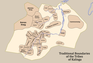 Various scholars have divided the Kalinga into sub-tribes in different ways using different criteria. Edward Dozier (1916-1971) divided the Kalinga into three broad subcultures based on geography: 1) Balbalan group in the north; 2) Pasil, 3) Lubuagan, and 4) Tinglayan groups in the south; and the 5) Tanudan group in the east. Rev. Teodoro Llamzon, S.J. (1926-), by contrast, classified the Kalinga according to dialect, identifying the Guinaang, Lubuagan, Punukpuk, Tabuk, Tinglayan, and Tanudan groups. [Source: Wikipedia]