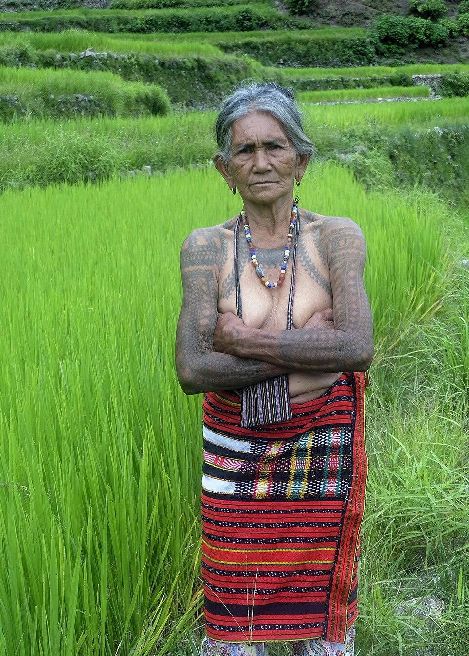 Tattoos among the Kalinga are known as batok or batek (called whatok among the Butbut Kalinga). They are among the most well-known tattoo traditions in the Cordillera, largely due to the fame of Apo Whang-od, once described as the “last mambabatok” (traditional tattoo artist), who now trains younger practitioners to ensure the survival of the practice. [Source: Wikipedia]