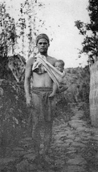 Adultery is not a common crime. I was unable to learn that the punishment for adultery was ever the subject for a council of the old men. It seems rather that the punishment—death of the offenders—is always administered naturally, being prompted by shocked and turbulent emotions rather than by a council of the wise men. In Igorot society the spouse of either criminal may take the lives of both the guilty if they are apprehended in the crime. Today the group consciousness of the penalty for adultery is so firmly fixed that adulterers are slain, not necessarily on the spur of the moment of a suspected crime but sometimes after carefully laid plans for detection. A case in question occurred in Suyak of Lepanto Province. A man knew that his faithless wife went habitually at dusk with another man to a secluded spot under a fallen tree. One evening the husband preceded them, and lay down with his spear on the tree trunk. When the guilty people arrived he killed them both in their crime, thrusting his spear through them and pinning them to the earth. Some Igorots brought down to the Manila carnival of 1912 were forced, at the request of Filipino authorities, to put on trousers. This was not for comfort’s sake, nor yet for decency’s, for the bare human skin is no uncommon sight in Manila. Apparently, the Filipinos of Manila were unwilling to let the world note that their cousins of the mountains were still in the naked state.