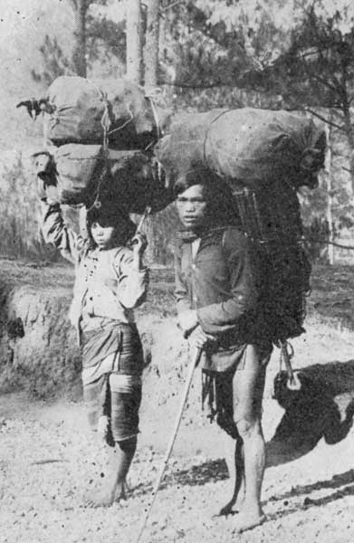 In one area one hundred and sixty bridges are crossed in the drop, and at times a rise will wash out not only the bridges, but all semblance of a road...A bamboo bridge had been built across the stream a few days before so that our cars might cross, but yesterday’s rain had washed it down, and would we try to cross on rafts? We looked at the rafts, bamboo platforms built over large bancas (canoes, double-enders cut out of a single log), the bamboos being lashed together with bejuco (rattan, the native substitute for nails), and decided that no self-respecting motor would stand such transportation, but would go to the bottom first by overturning. So we got our stuff aboard the rafts, were poled over, and made the rest of the journey to Tayug, our first considerable halt, in carromatas (the native two-wheeled, springless cart). Fortunately the distance was short, the carromata being an instrument of torture happily overlooked by the Spanish Inquisition.