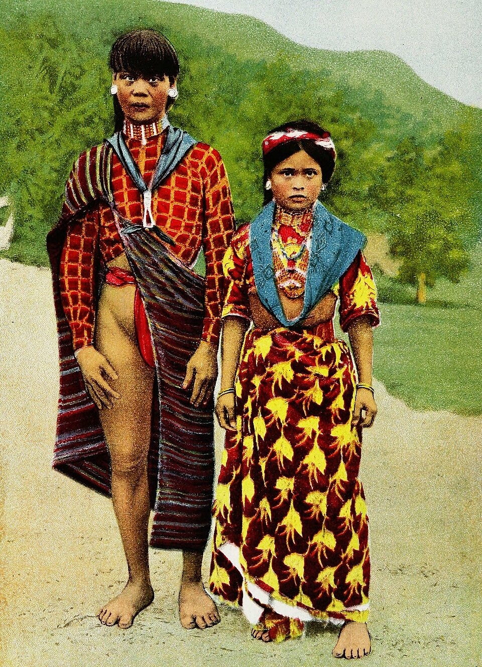 Cornélis De Witt Willcox wrote in “The Head Hunters of Northern Luzon”: “The sight that greeted us was stirring. There must have been thousands of people, as many women as men, and almost as many children as women, all of whom set up a mighty shout as our little column emerged. But what especially and immediately caught the eye was the brilliancy of the scene. For, whereas the people so far encountered had impressed us by the sobriety of color displayed, these Kalingas blazed out upon us in the most vivid reds and yellows. Many of them, women as well as men, had on tight-fitting Moro jackets of red and yellow stripes; but whatever it was—skirt, jacket, or gee-string—only one pattern showed itself, the alternation of red and yellow, well brought out by the clear brown of the skin. As though this [163] were not enough, some men had adorned their abundant black hair with scarlet hibiscus flowers, and all, or nearly all, wore plumes of feathers, one over each ear. Each ranchería has its distinctive plume; as, red with black tips, black with red, all red, white with black, and so on, some with notched and others with natural edges. Many men had axes on their hips. The whole effect was startling, and all the more that these people, erect, sinewy, of excellent build like their comrades farther south, were perceptibly taller, men five feet ten inches tall not being uncommon. Add to this a stateliness of walk and carriage, combined with a natural, wholly unconscious ease and grace of motion, and it is easy to imagine the fine impression made upon us by our first look upon these assembled people. It is not too much to say that the whole sight was splendid; but, more than this, under the surface of things, it was easy to catch at once the possibility of a real development by these people under any sort of opportunity whatever.”[Source:“The Head Hunters of Northern Luzon” by Cornélis De Witt Willcox, Lieutenant-Colonel U.S. Army, Professor United States Military Academy, 1912 ]