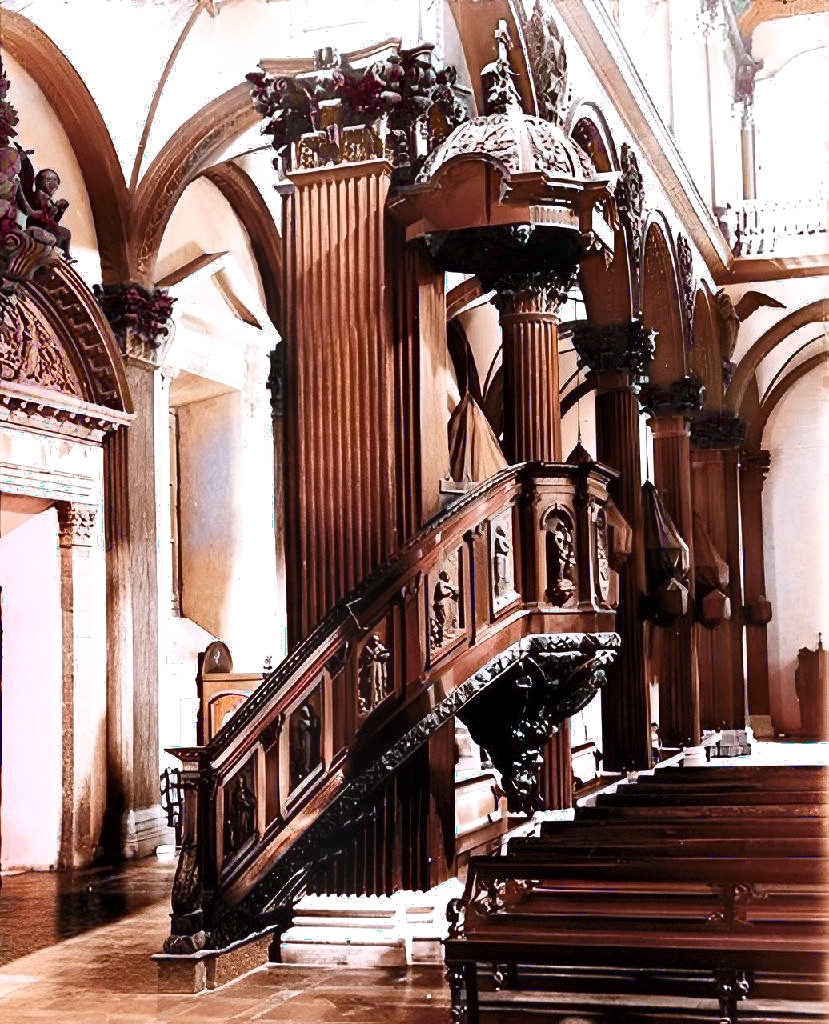 Structurally, these churches were typically rectangular or cruciform in layout, with thick adobe or brick walls reinforced by massive buttresses to withstand earthquakes. Small windows were placed between the supports, while facades were decorated with simple classical elements such as niches and reliefs. Over time, exposure to moisture and vegetation softened their appearance, adding character to their otherwise heavy and imposing forms.