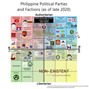 Philippine political parties are essentially nonideological vehicles for personal and factional political ambition. Political parties are not that strong in the Philippines. Rewriting the constitution to eliminate term limits and establishing a strong two-party system are the reforms that are discussed most often. Politicians move from party to party as the needs of their constituencies dictate because the political parties have no ideologies. [Source: everyculture.com]