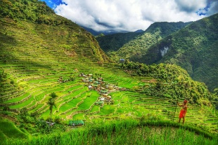The rice terraces of Banaue are still cultivated and maintained using traditional methods, even though many nearby terraces have been abandoned or have fallen temporarily out of use because of shifts in climate and rainfall patterns within the mountain watershed. In some villages, Christianization during the 1950s disrupted the performance of indigenous practices and rituals that were central to sustaining the human commitment needed to balance nature and society in the landscape; today, however, traditional rituals coexist alongside Christianity. Despite this continuity, the terraced landscape remains extremely fragile. The long-standing social balance that sustained the rice terraces for two thousand years is now seriously threatened by technological change and broader processes of social evolution. Rural-to-urban migration has reduced the agricultural labor force required to maintain the vast terrace system, while climate change has caused streams to dry up, and major earthquakes have altered water sources, shifted terrace dams, and forced the rerouting of irrigation systems. [Source: UNESCO]