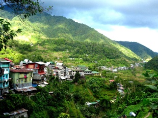 Banaue itself is a pretty big town in the region. It has a lively market and can be reached by paved roads. There are lots of backpackers, guest houses and cheap restaurants. It is located in valley an elevation of 1,200 meters (3,960 feet).