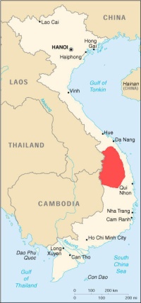 Gray-shanked langurs were first described in 1997 on the basis of newly discovered individuals in central Vietnam. These monkeys are typically found in the Central Highlands of Vietnam from Quang Nam Province in the north to Binh Dinh and Gia Lai Provinces in the south. A hybridization zone exists with red-shanked douc langurs on the northern limit of their range. Gray-shanked douc langurs live in evergreen and semi-evergreen primary rainforests usually at altitudes from 900 to 1400 meters (2950 to 4,932 feet) where the canopy cover is 80 to 95 percent and trees have a diameter at breast height of 40 to 120 centimeters and heights of 25 to 35 meters. They have also been found in some degraded forests.[Source: Matt Berger, Animal Diversity Web (ADW)]